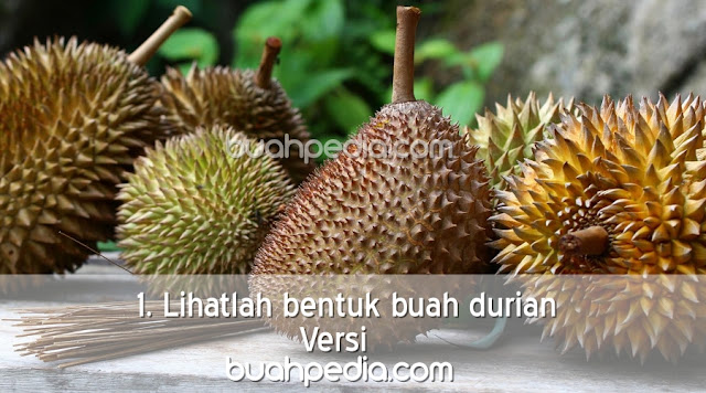 Pilih durian dengan bentuk bulat, bukan lonjong. Bentuk yang bulat menandakan daging buahnya tebal. Pilihlah durian yang bulat dan hindari yang lonjong. Biasanya durian bulat punya daging yang lebih banyak dibanding durian lonjong.